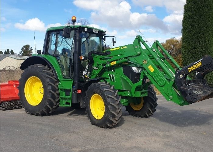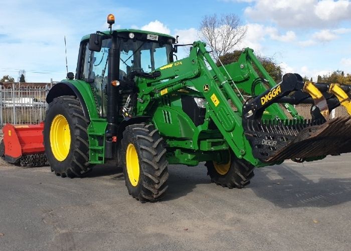 The John Deere 6110M Cab Tractor with 623R Loader & Bucket is a powerful and versatile machine designed for a variety of agricultural and landscaping tasks. Featuring a comfortable and spacious cab, this tractor provides a productive work environment in all weather conditions.